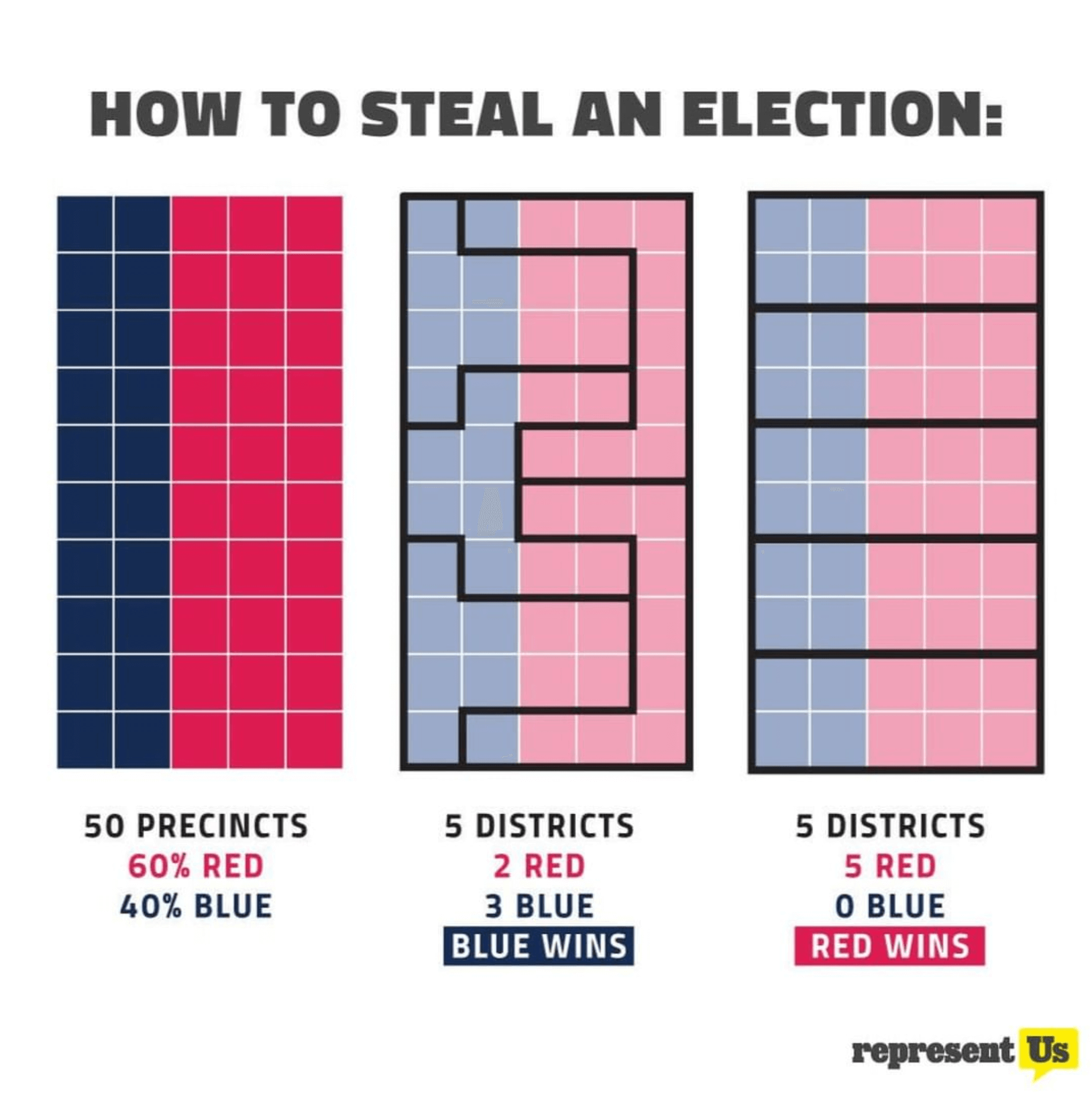 On top of that Gerrymandering is a way politicians in power manipulate votes to gain power and elect unpopular candidates who can afford to cheat the system.